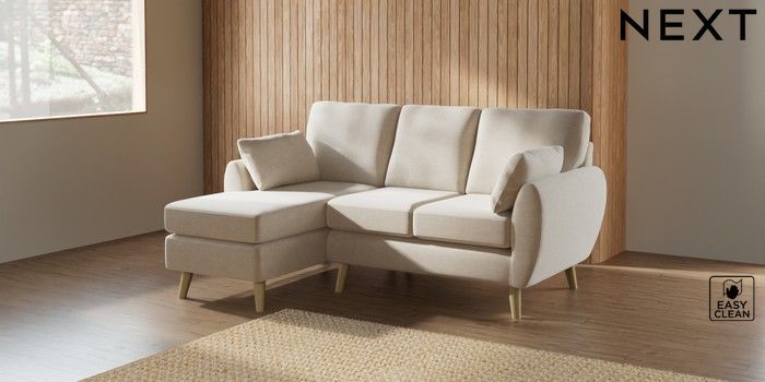 7.2.10 Wilson Small Sofa Chaise - Left Hand Fine Chenille Easy Clean Oyster Retro Tapered - Light | Made Click here to use our website with more accessibility support, for example screen readers
