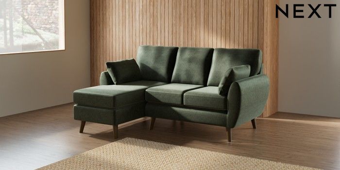 7.2.10 Wilson Small Sofa Chaise - Left Hand Luxe Chenille Mid Green Retro Tapered - Mid | Made Click here to use our website with more accessibility support, for example screen readers