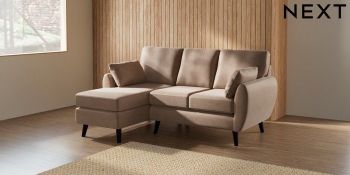 7.2.10 Wilson Small Sofa Chaise - Left Hand Luxe Chenille Mid Natural Retro Tapered - Dark | Made Click here to use our website with more accessibility support, for example screen readers