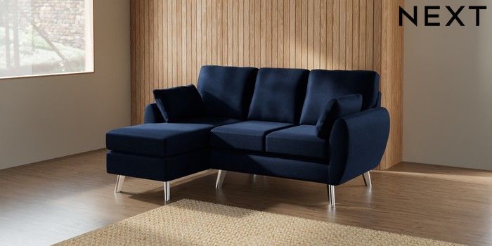 7.2.10 Wilson Small Sofa Chaise - Left Hand Luxe Chenille Navy Blue Metal Tapered - Chrome | Made Click here to use our website with more accessibility support, for example screen readers