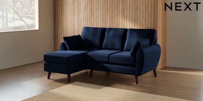 7.2.10 Wilson Small Sofa Chaise - Left Hand Luxe Chenille Navy Blue Retro Tapered - Dark Brown | Made Click here to use our website with more accessibility support, for example screen readers