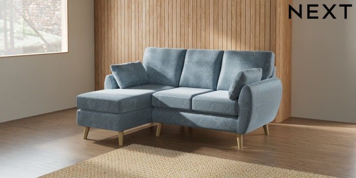 7.2.10 Wilson Small Sofa Chaise - Left Hand Plush Chenille Light Blue Retro Tapered - Light | Made Click here to use our website with more accessibility support, for example screen readers