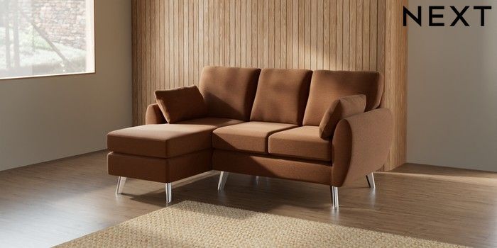 7.2.10 Wilson Small Sofa Chaise - Left Hand Ripple Chenille Mid Rust Brown Metal Tapered - Chrome | Made Click here to use our website with more accessibility support, for example screen readers