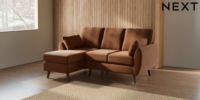 7.2.10 Wilson Small Sofa Chaise - Left Hand Ripple Chenille Mid Rust Brown Retro Tapered - Mid | Made Click here to use our website with more accessibility support, for example screen readers