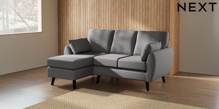 7.2.10 Wilson Small Sofa Chaise - Left Hand Studio Chenille Mid Grey Retro Tapered - Dark | Made Click here to use our website with more accessibility support, for example screen readers