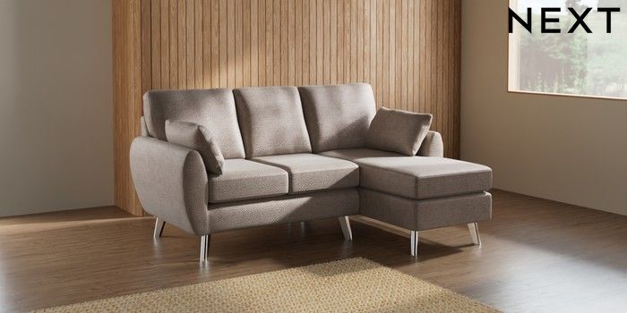 7.2.10 Wilson Small Sofa Chaise - Right Hand Boucle Chenille Light Natural Metal Tapered - Chrome | Made Click here to use our website with more accessibility support, for example screen readers
