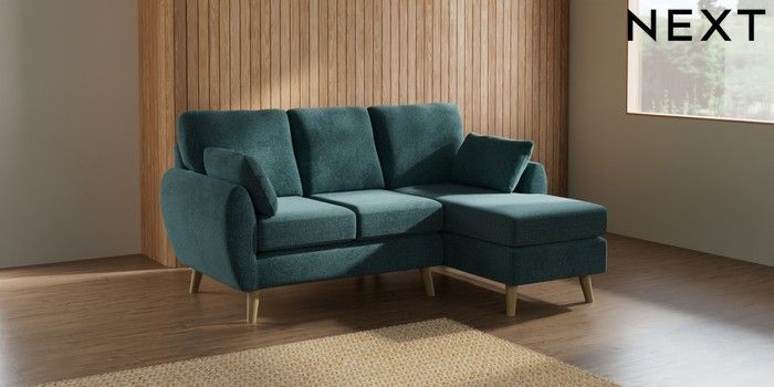 7.2.10 Wilson Small Sofa Chaise - Right Hand Chunky Chenille Mid Teal Green Retro Tapered - Light | Made Click here to use our website with more accessibility support, for example screen readers