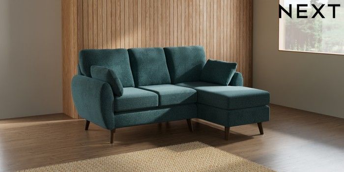 7.2.10 Wilson Small Sofa Chaise - Right Hand Chunky Chenille Mid Teal Green Retro Tapered - Mid | Made Click here to use our website with more accessibility support, for example screen readers