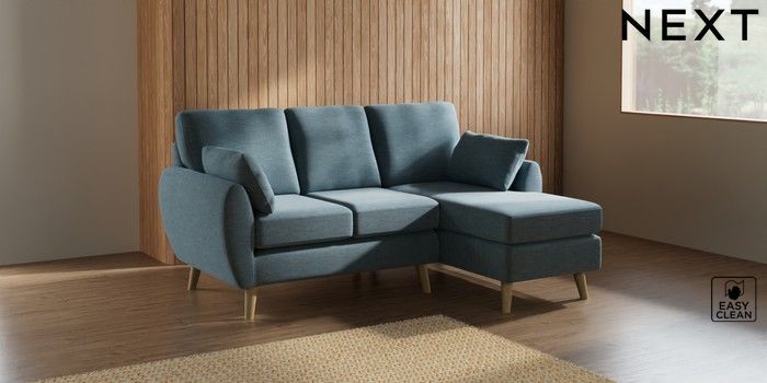 7.2.10 Wilson Small Sofa Chaise - Right Hand Fine Chenille Easy Clean Mid Blue Retro Tapered - Light | Made Click here to use our website with more accessibility support, for example screen readers