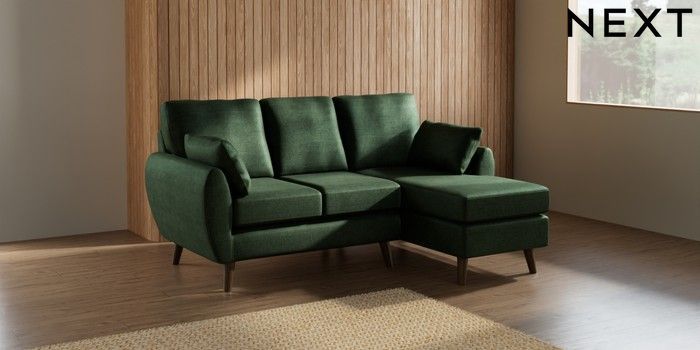 7.2.10 Wilson Small Sofa Chaise - Right Hand Luxe Chenille Dark Green Retro Tapered - Mid | Made Click here to use our website with more accessibility support, for example screen readers