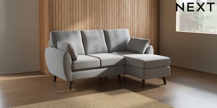 7.2.10 Wilson Small Sofa Chaise - Right Hand Natural Mix Light Grey Retro Tapered - Mid | Made Click here to use our website with more accessibility support, for example screen readers