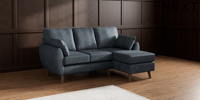 7.2.10 Wilson Small Sofa Chaise - Right Hand Plush Chenille Slate Blue Retro Tapered - Mid | Made Click here to use our website with more accessibility support, for example screen readers