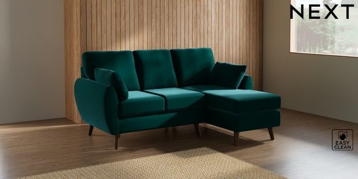 7.2.10 Wilson Small Sofa Chaise - Right Hand Plush Velvet Easy Clean Juniper Green Retro Tapered - Mid | Made Click here to use our website with more accessibility support, for example screen readers