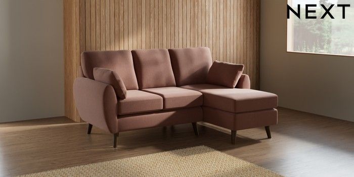 7.2.10 Wilson Small Sofa Chaise - Right Hand Relaxed Linen Look Light Rust Brown Retro Tapered - Mid | Made Click here to use our website with more accessibility support, for example screen readers