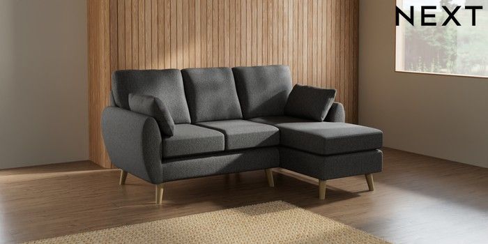 7.2.10 Wilson Small Sofa Chaise - Right Hand Tweedy Chenille Dark Grey Retro Tapered - Light | Made Click here to use our website with more accessibility support, for example screen readers