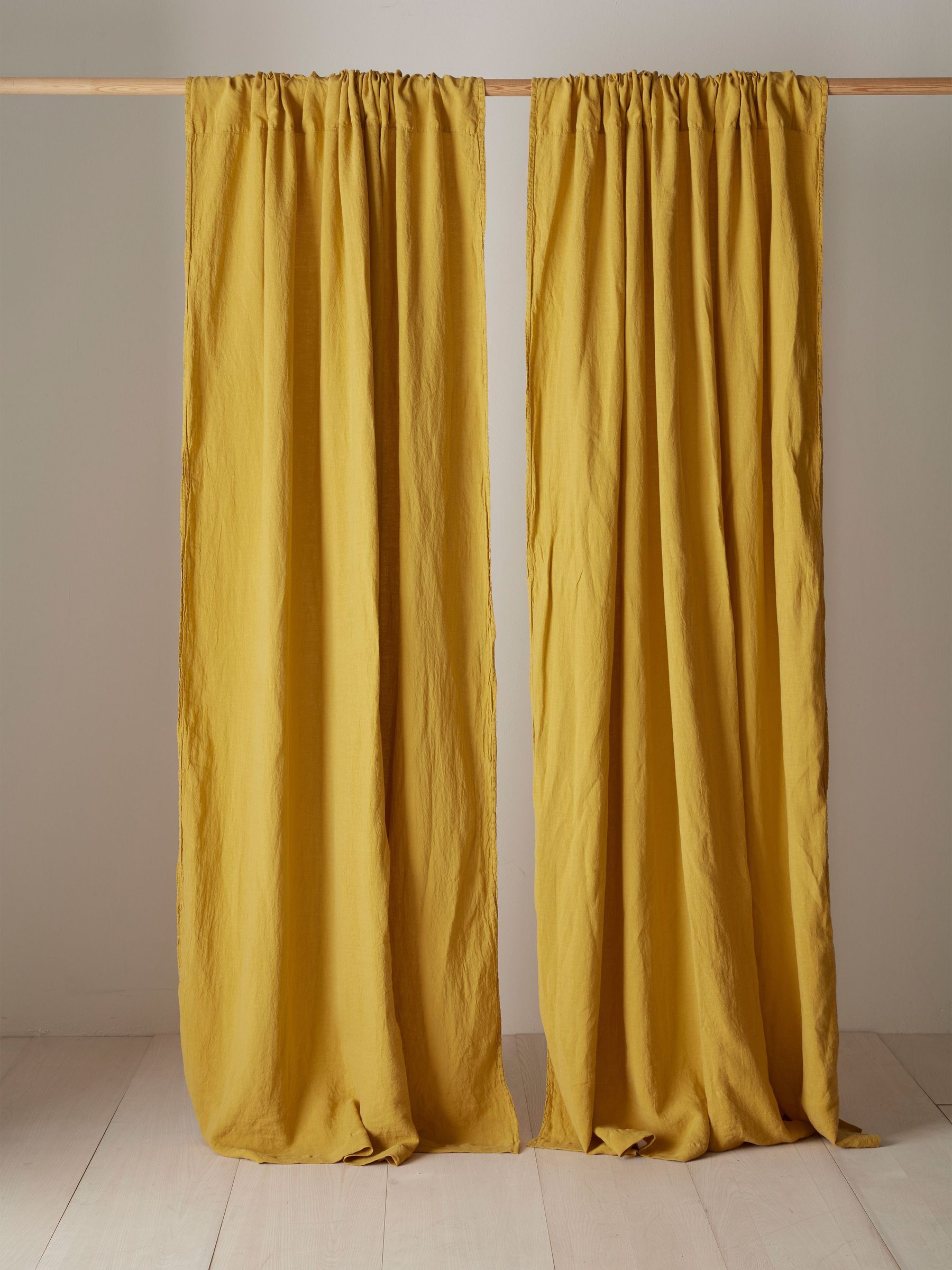 Secret Linen Store Mustard 100% Linen Loop Top Slot Header Single Curtains