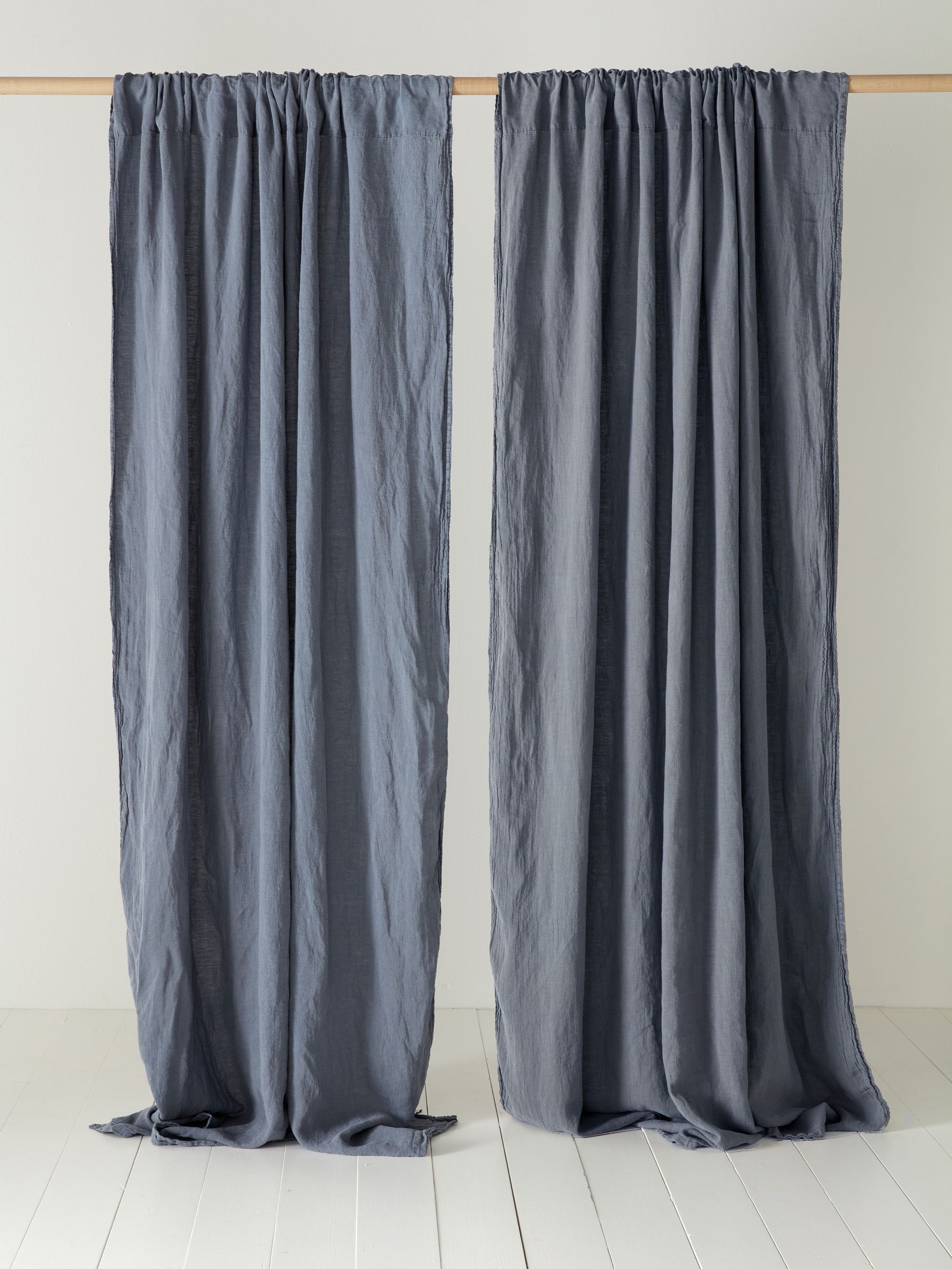 Secret Linen Store French Blue 100% Linen Loop Top Slot Header Single Curtains