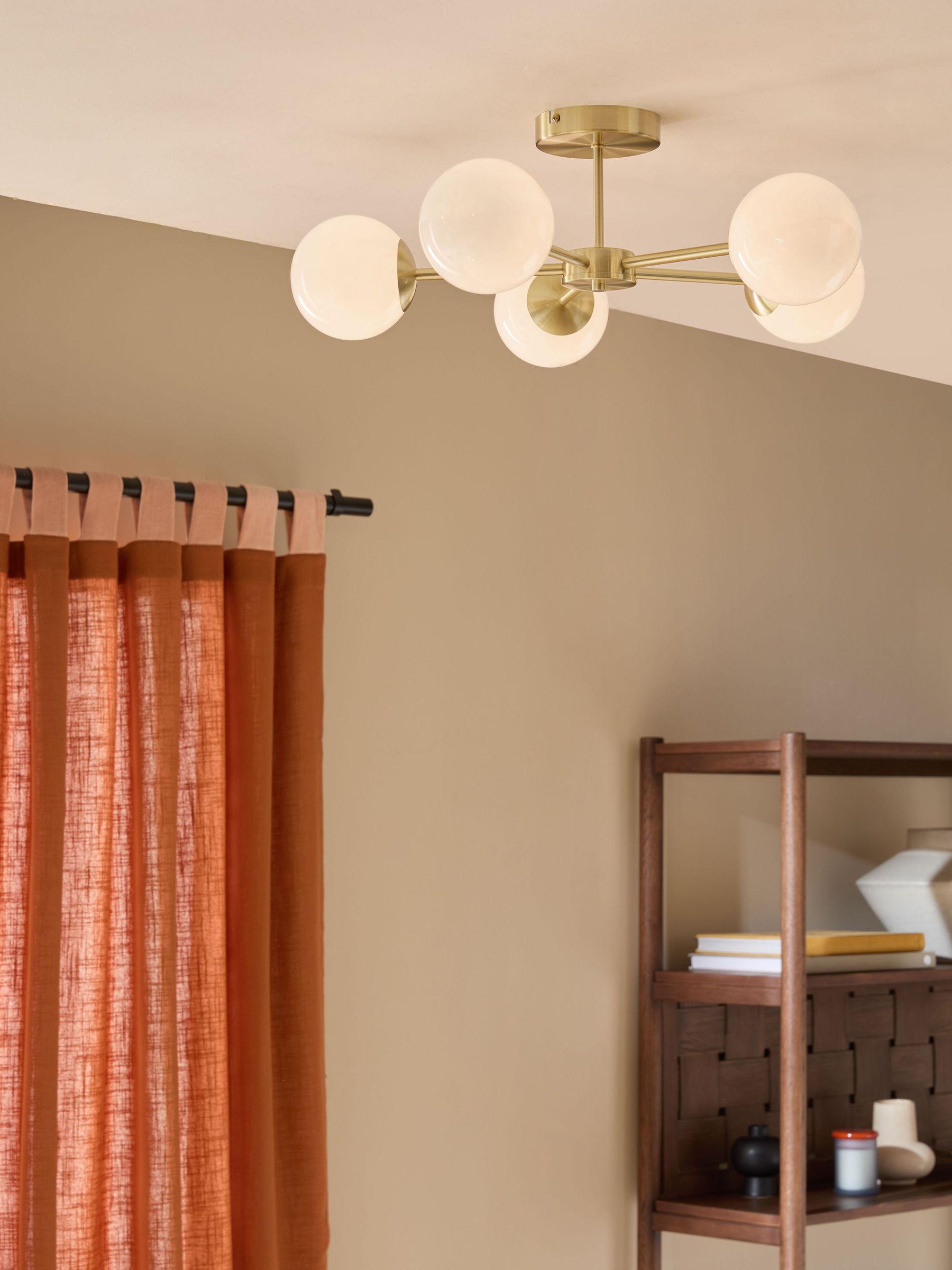 Globe 5 Light Flush Ceiling in Brass/Opal