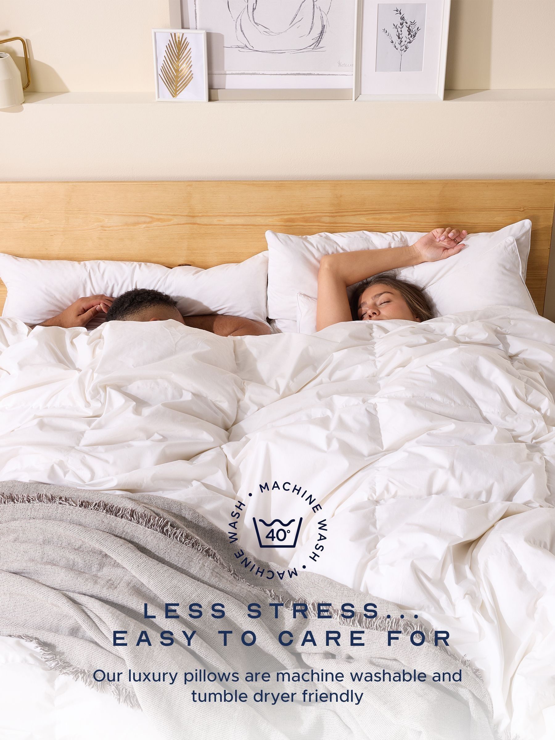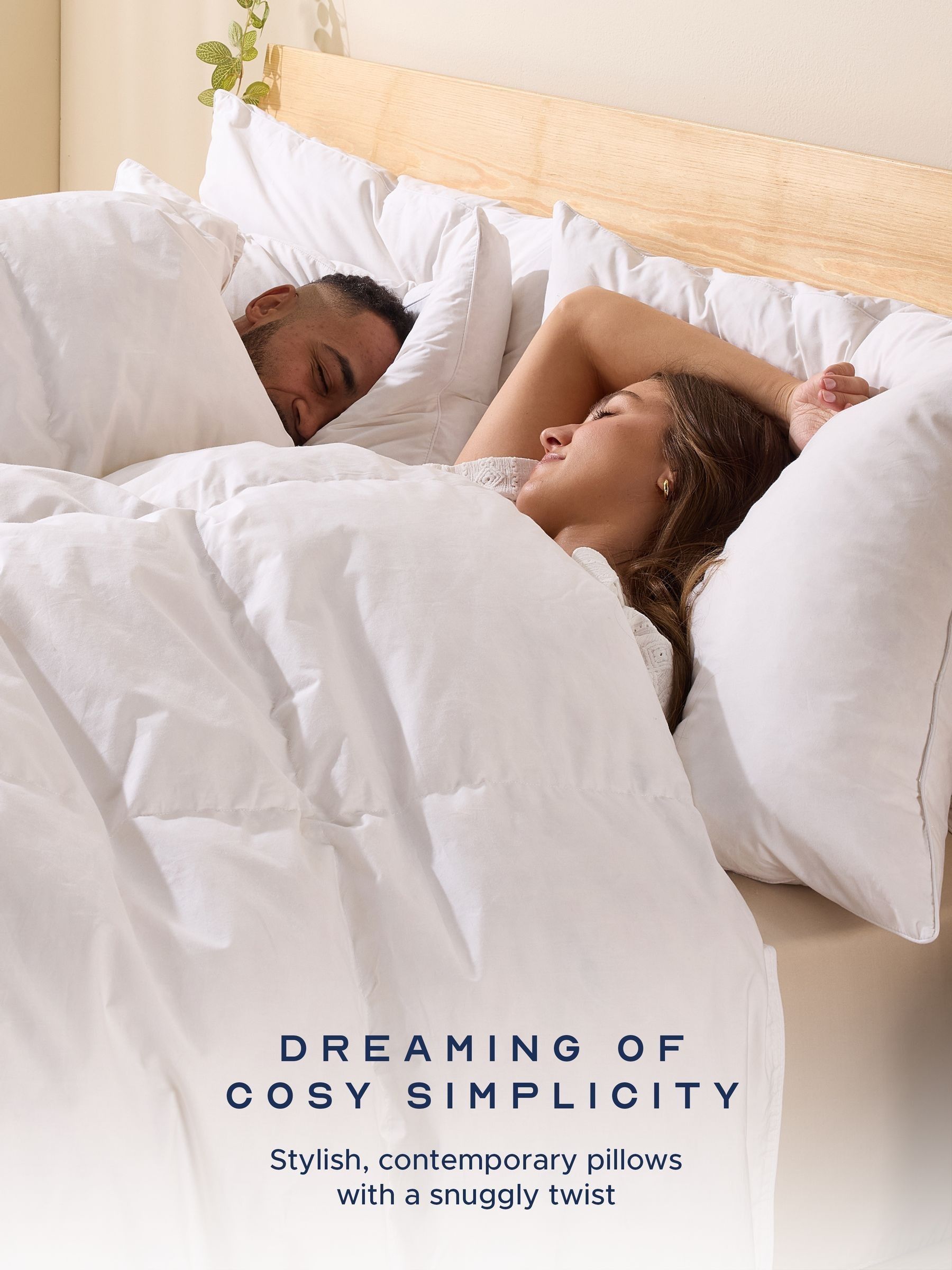 The Snuggledown Duck Feather & Down Medium Support Back Sleeper Pillow is ideal for back sleepers, or for if you prefer medium support pillows with a sumptuously soft filling. Filled with a classic blend of 85% duck feathers and 15% duck down, these luxurious duck feather and down pillows provide all the comfort and support required from back sleeper pillows. The covers are made from 100% cotton that’s not only soft and cosy but also naturally breathable. They also have a 230 thread count, acting as a barrier to stop any feathers from poking through, allowing you to have a comfortable and uninterrupted sleep. A great choice if you would like your pillows made from all-natural materials, and you can rest assured that they have been made with responsibly sourced feather which is compliant with the European Down and Feather Association (EDFA) regulations and Traceability Standard. Machine Washable Cover Material: 100% Cotton Filling Material: 85% duck feathers and 15% duck down Designed and Made in the United Kingdom For top tips on choosing the best duvets and pillows for you read our handy guide here. Machine washable. Main 100% Cotton. Filling 85% Duck Feather*, 15% Duck Down* *Contains non-textile parts of animal origin.