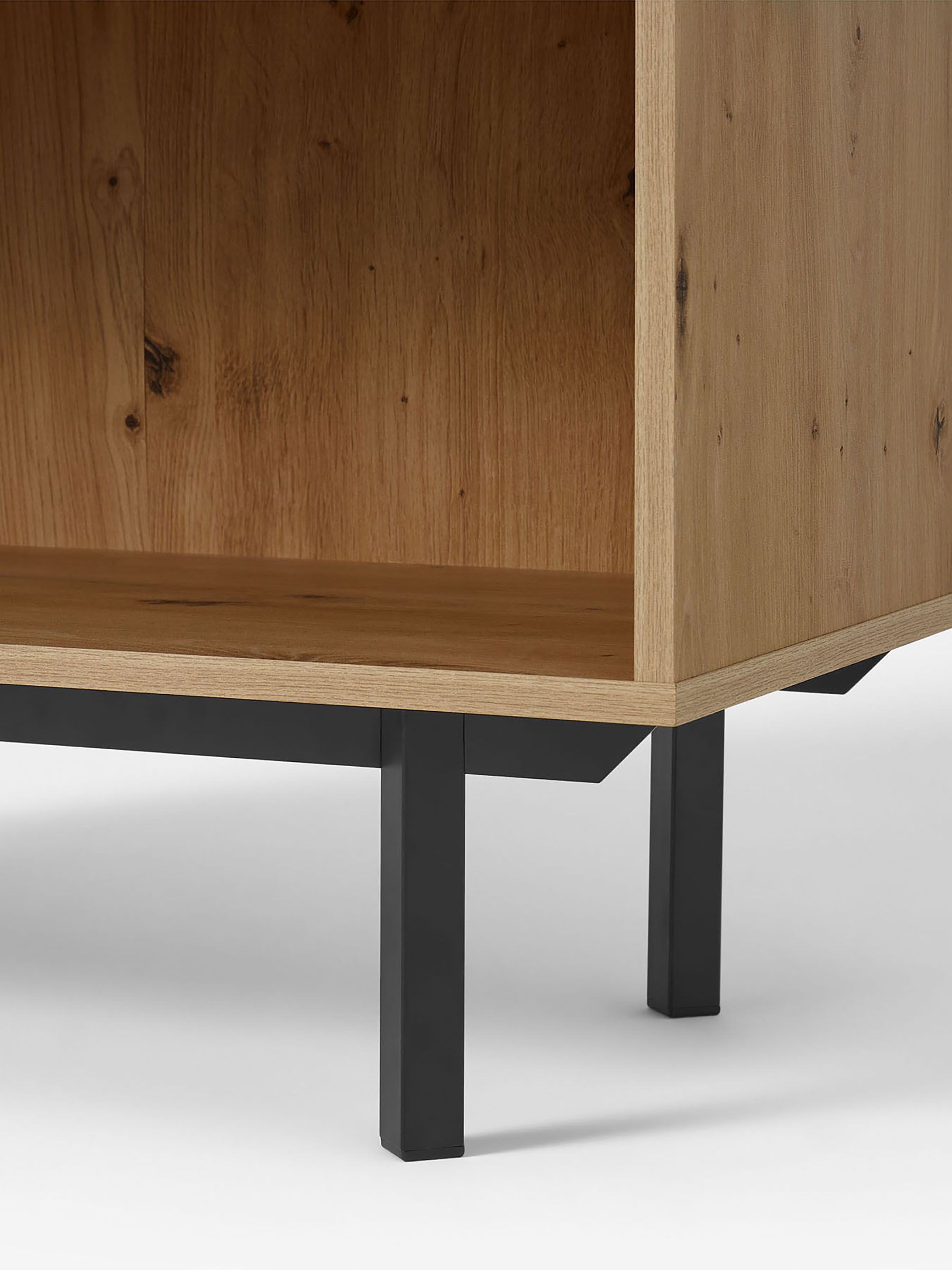Damien has storage sorted. Stylish wood effect finish, subtle black contrasting details, and space for all your necessities. With either 5 shelves or 3 shelves and 2 cupboards, this shelving unit has it all.. Want more? Damien's got a matching media unit, sideboard and coffee table, too. Wipe clean only. This product requires self-assembly. Regrettably, self-assembly items cannot be returned once assembly is part or fully completed, unless they do not comply with the description given, are faulty, or are not fit for any stated purpose. Your statutory rights are not affected., Larger products with this symbol will be delivered by Next Home Two Person Delivery, who will place the product in the room of your choice. Assembled furniture will be unwrapped. Cost for 2 man delivery, £15.00. If you order more than one, item we will only charge one fee. We deliver seven days a week except for bank holidays., We want you to love our furniture. So this piece comes with a 15 year guarantee that you can trust. Our 15 year Structural Guarantee covers your furniture against manufacturing faults or defects of the frame construction from the date of delivery. Exclusions apply, for more details see https://xcdn.next.co.uk/pdfs/buyingguide/15yrguarantee.pdf