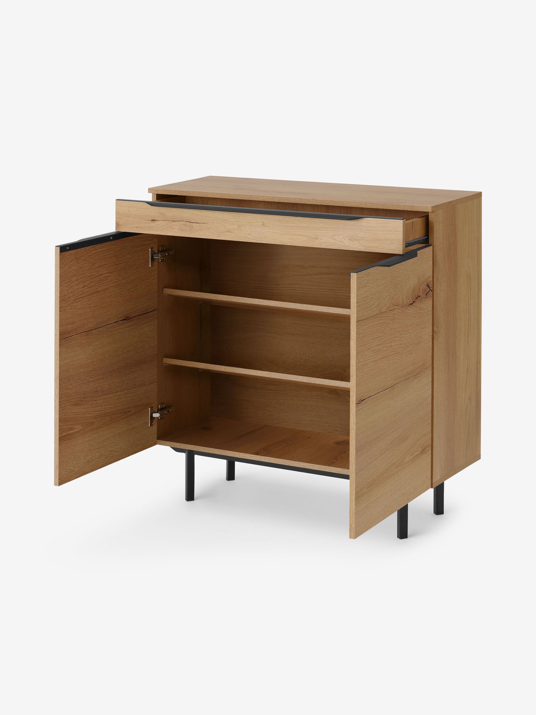 Damien has storage sorted. Warm tones, subtle black contrast, and space for all your shoes. Want more? Damien's got matching storage options throughout your entire home. Please note that unit can only be used when permanently fixed to the wall. Internal drawer dimensions: 28 x 86 x 5cm. Leg height 17.5cm. Height 100cm Width 95cm Depth 34cm Wipe clean only. Click here to see assembly instructions Multibuy: Save 10% when buying 2 or more items each priced at £150 or above across selected Sofas, Chairs, Rugs, Beds, Mattresses and Furniture Collections. Multibuy is only applicable to the UK Mainland Area.* Condition: * Saving applied will be apportioned across all qualifying items. To get the saving, you must order the qualifying items in the same order at the same time. If you later return one of the items, you will not be entitled to the discount. Offer applies to selected items at full price. Please refer to T&Cs for full details. This product requires self-assembly. Regrettably, self-assembly items cannot be returned once assembly is part or fully completed, unless they do not comply with the description given, are faulty, or are not fit for any stated purpose. Your statutory rights are not affected., Larger products with this symbol will be delivered by Next Home Two Person Delivery, who will place the product in the room of your choice. Assembled furniture will be unwrapped. Cost for 2 man delivery, £15.00. If you order more than one, item we will only charge one fee. We deliver seven days a week except for bank holidays., We want you to love our furniture. So this piece comes with a 15 year guarantee that you can trust. Our 15 year Structural Guarantee covers your furniture against manufacturing faults or defects of the frame construction from the date of delivery. Exclusions apply, for more details see https://xcdn.next.co.uk/pdfs/buyingguide/15yrguarantee.pdf