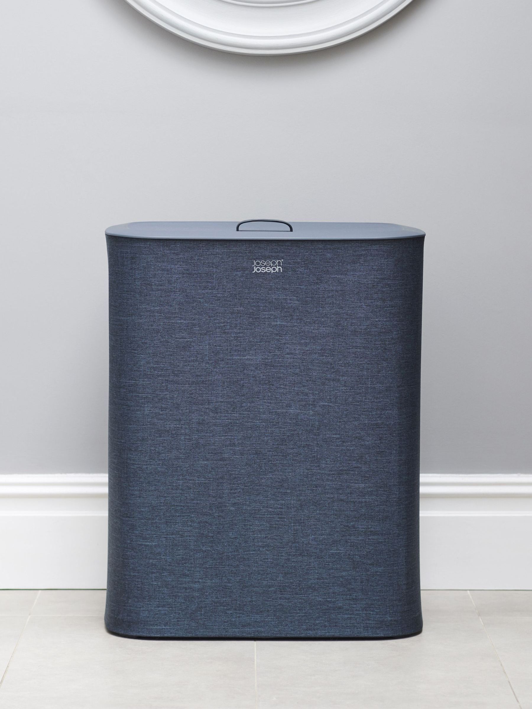 This smart laundry basket features a host of practical features that help make wash day less of a chore. Beneath the lid it has 2 x 45 litre fabric tote bags allowing you to separate washing into light and dark/coloured fabrics. Each bag has handles at the top enabling you to conveniently lift and carry it straight to the machine and a helper handle on the base to make emptying easier. When replacing each bag in the basket there's no fiddly ties or buttons to do up either as the self-locating rim ensures it drops perfectly back into place, ready for the next load. The stylish fabric exterior is designed to compliment a range of interior styles and decors making it perfect for storing in the bathroom, bedroom or utility room. Comes flat packed with full assembly instructions. Height 71cm Width 56cm Depth 39.5cm