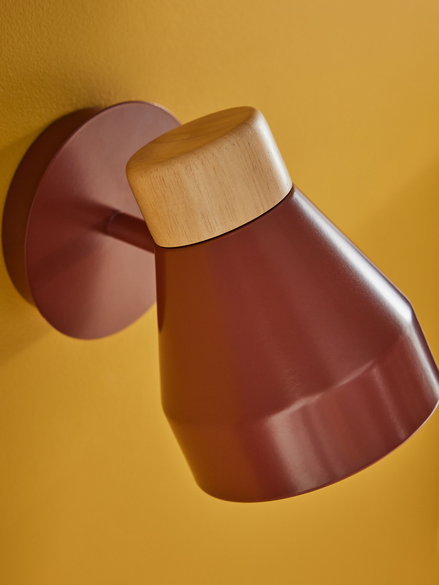Create a clean, pared-back look with this Scandi-inspired wall light. It has a narrow shade to create a focused pool of light – buy two and hang them on either side of your bed as space-savvy bedside lamps. Shade dimensions (cm): H12 x W15 x D15. Ceiling rose dimensions (cm): H2.5 x Dia10. Assembly: To be fitted by a qualified electrician. Max watt CFL bulb: 6w. Dimmable: No. Max watt halogen bulb: 18w. Max watt incandescent bulb: 25w. Max watt LED bulb: 4w. Lightbulb fitting: E14. Height 15cm Width 35cm Depth 12cm Click here for information on how to recycle your old electrical item. For Ireland: If this product contains an LED light bulb or luminaire, included in this price is a contribution to recycling costs of €0.05 80% Metal, 20% Wood.