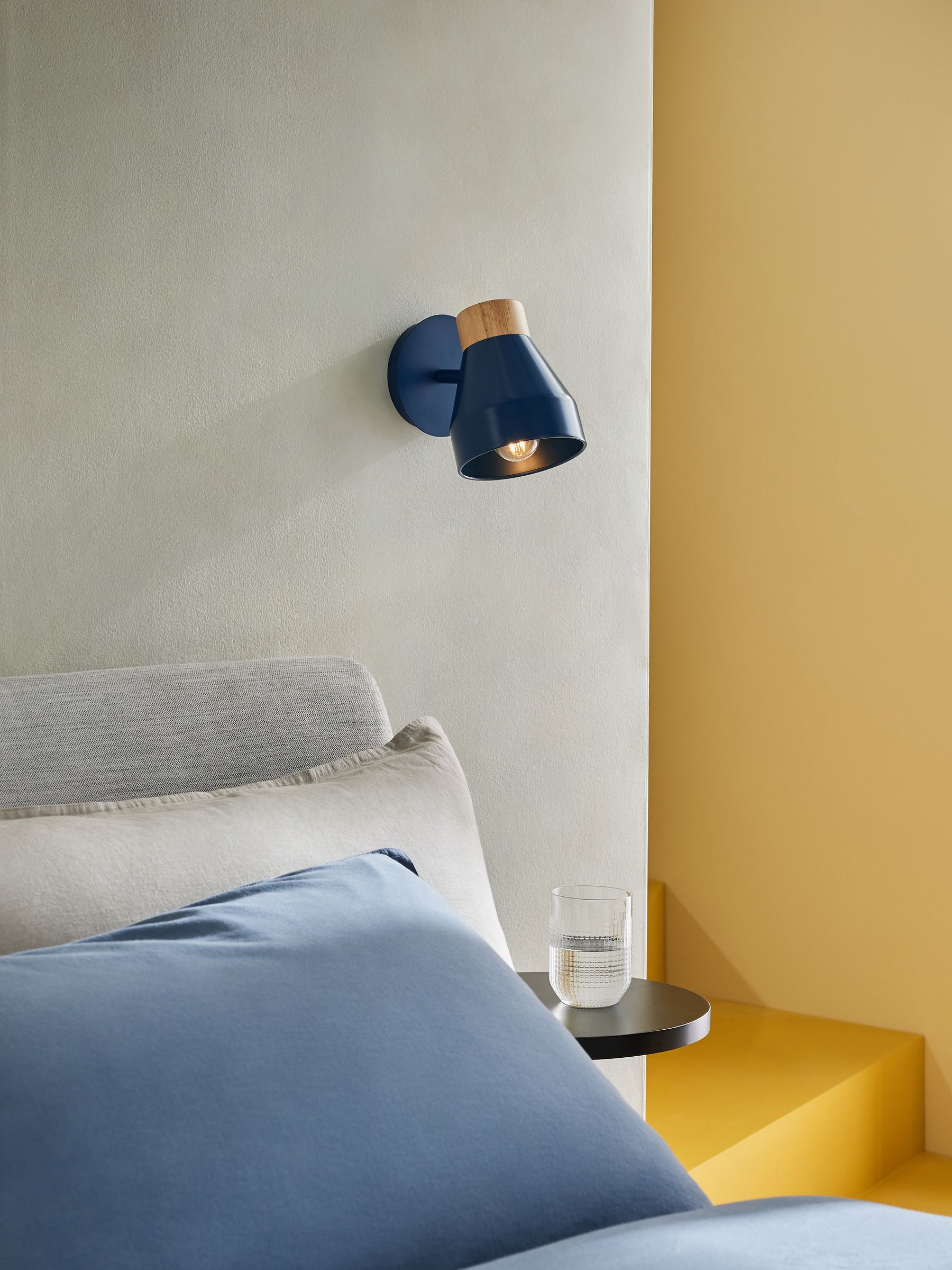 Create a clean, pared-back look with this Scandi-inspired wall light. It has a narrow shade to create a focused pool of light – buy two and hang them on either side of your bed as space-savvy bedside lamps.