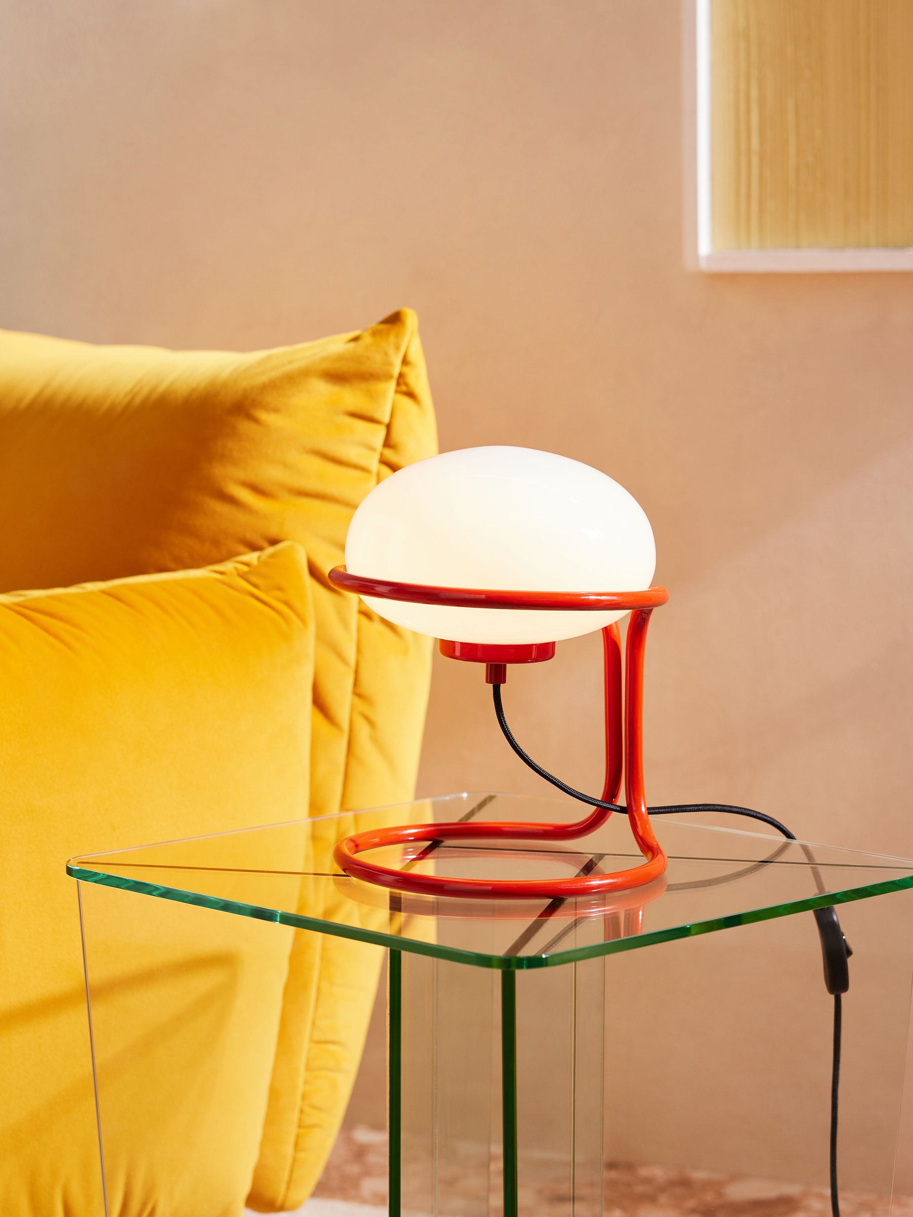 Give your corners a polished finish with the red Piper table light. Create the look of the moment with the high shine finish and soft glass globe. Design perfection.