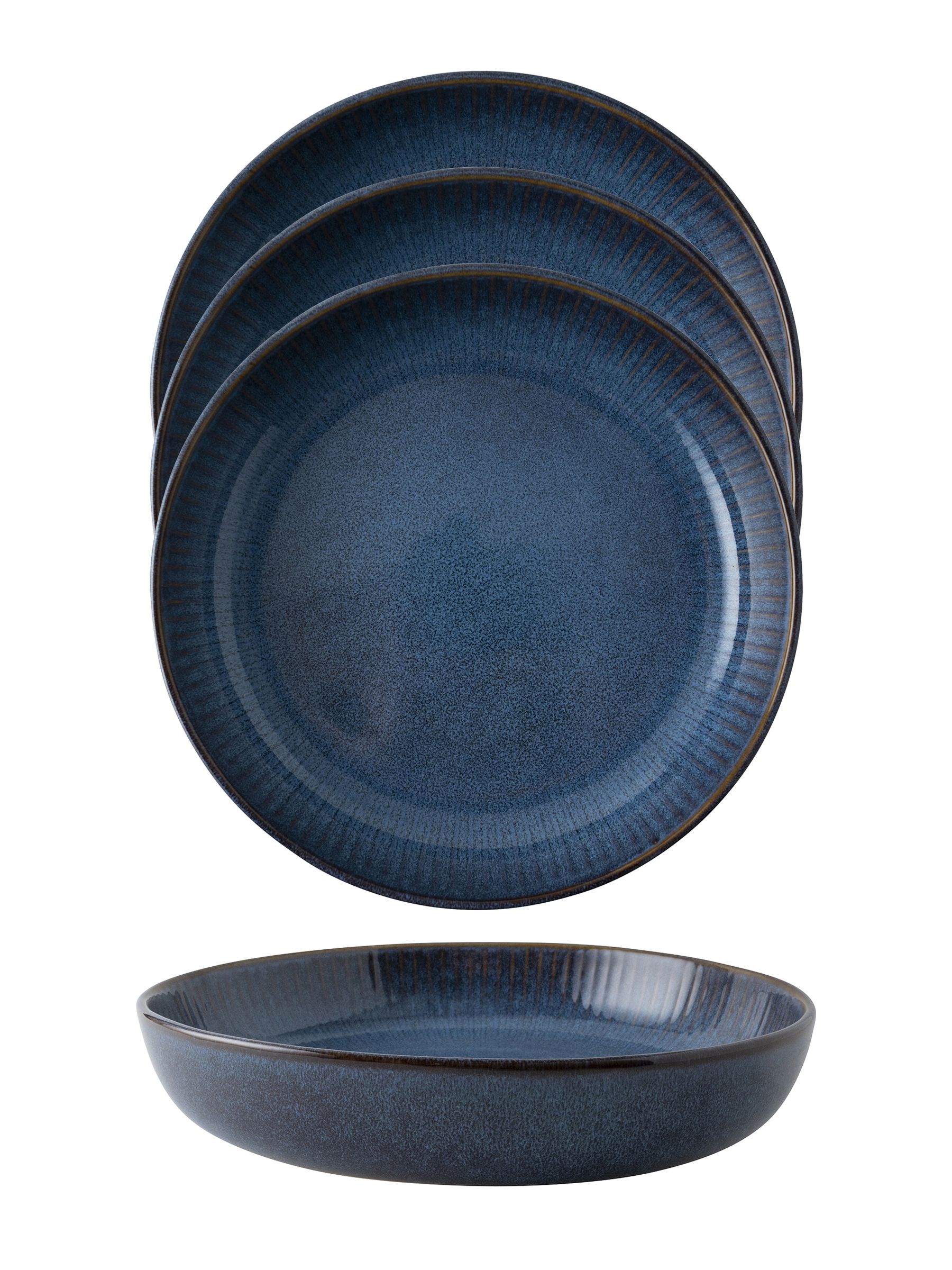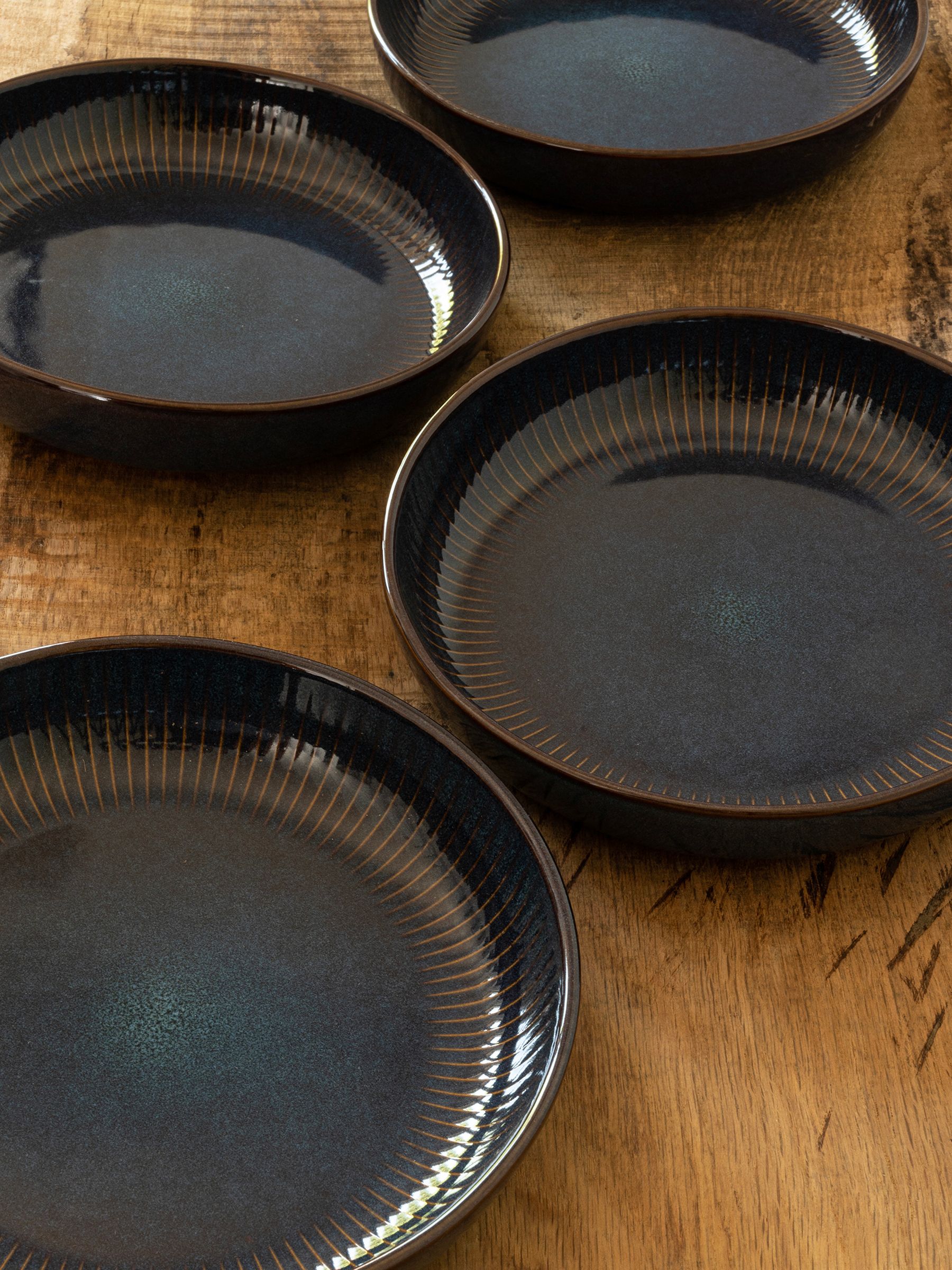Dutch Rose Sapphire Set of 4 deep pasta plates - Grey - Available in 2 different colours, these deep plates are our take on the traditional Italian pasta plate and is a versatile piece, perfect for serving all kinds of pasta, but also great for rice, salads or as a serving bowl. Inspired by the Japanese sense of sophistication and minimalism, this collection has clear references to shell shapes, blossoms and abstract structures present in nature. Made with high quality stoneware, they will bring style, quality and sustainability to your home. The range is designed to let you mix and match each piece within the collection and have a different tablescape every day. The ridges delicately running around the mug are meant to mimic natural shells and blossoms. Each item is hand-finished and double-fired to create colour variations and playful bubbles in the reactive glazes, making each piece more durable and one-of-a-kind. Dishwasher and microwave safe. D/Wash and M/W safe. 100% Stoneware.