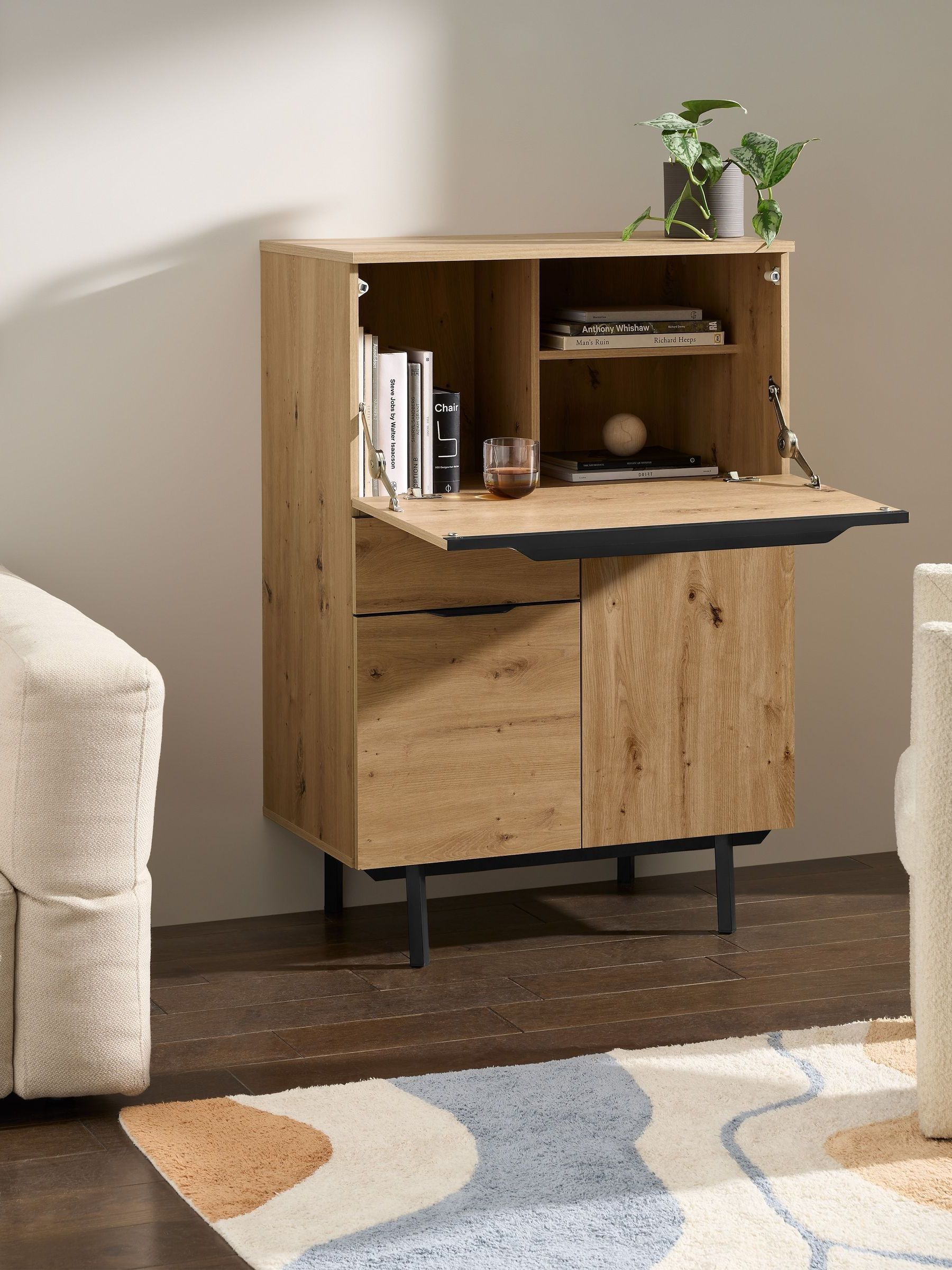 Damien has storage sorted. Warm tones, subtle contrast, space for all your home office essentials. Want more? Damien's got matching storage options for throughout your entire home. Leg and handle details are black powder coated steel. Leg height 17.5cm. Self assembly. Height 117cm Width 92cm Depth 45cm This product requires self-assembly. Regrettably, self-assembly items cannot be returned once assembly is part or fully completed, unless they do not comply with the description given, are faulty, or are not fit for any stated purpose. Your statutory rights are not affected., We want you to love our furniture. So this piece comes with a 15 year guarantee that you can trust. Our 15 year Structural Guarantee covers your furniture against manufacturing faults or defects of the frame construction from the date of delivery. Exclusions apply, for more details see https://xcdn.next.co.uk/pdfs/buyingguide/15yrguarantee.pdf