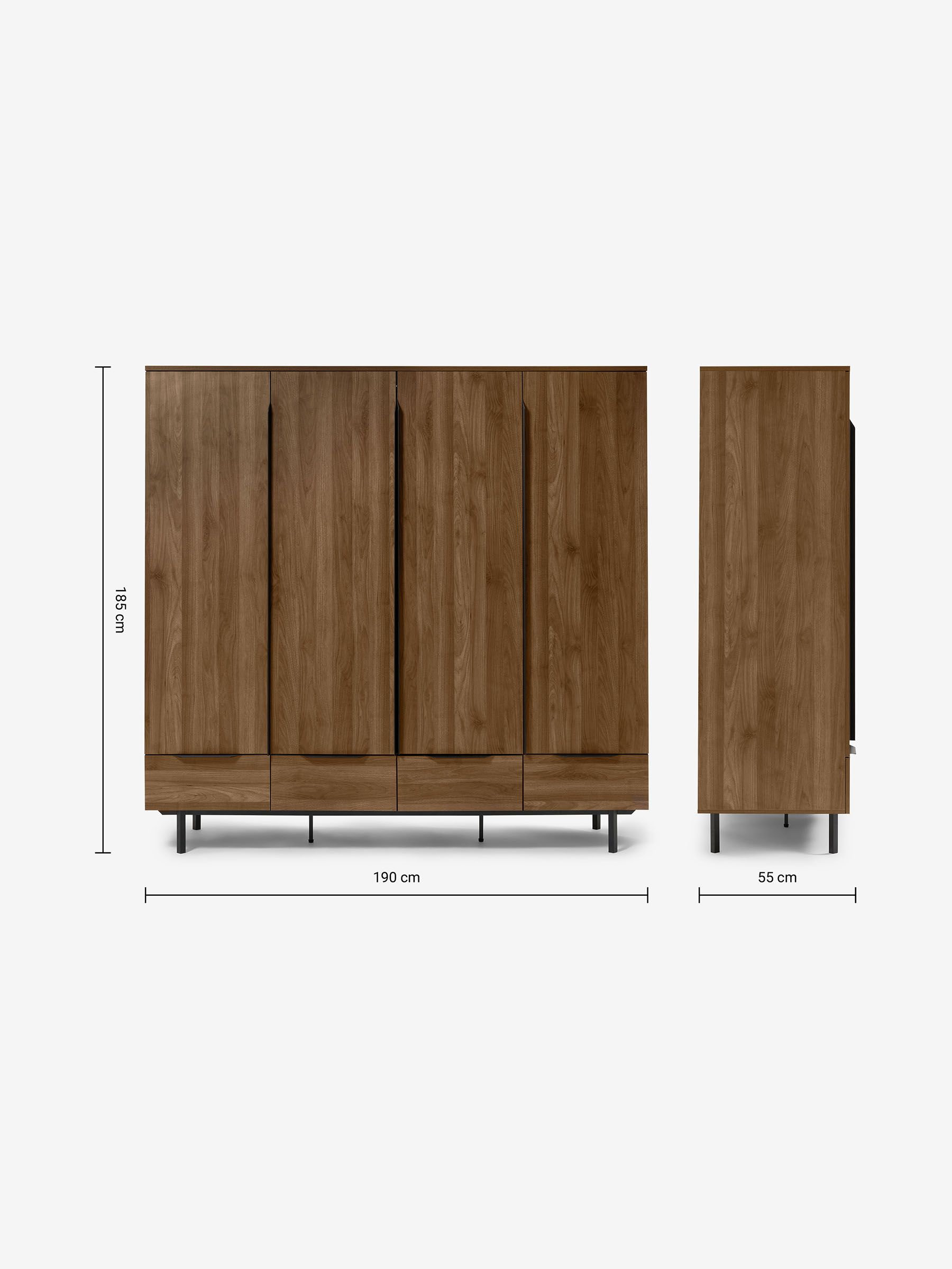 Damien has storage sorted. Warm tones, subtle contrast, space for all your clothes. Want more? Damien's got matching storage options for throughout your entire home. Leg and handle details are black powder coated steel. Height 185cm Width 190cm Depth 55.5cm Wipe clean only. Multibuy: Save 10% when buying 2 or more items each priced at £150 or above across selected Sofas, Chairs, Rugs, Beds, Mattresses and Furniture Collections. Multibuy is only applicable to the UK Mainland Area.* Condition: * Saving applied will be apportioned across all qualifying items. To get the saving, you must order the qualifying items in the same order at the same time. If you later return one of the items, you will not be entitled to the discount. Offer applies to selected items at full price. Please refer to T&Cs for full details.