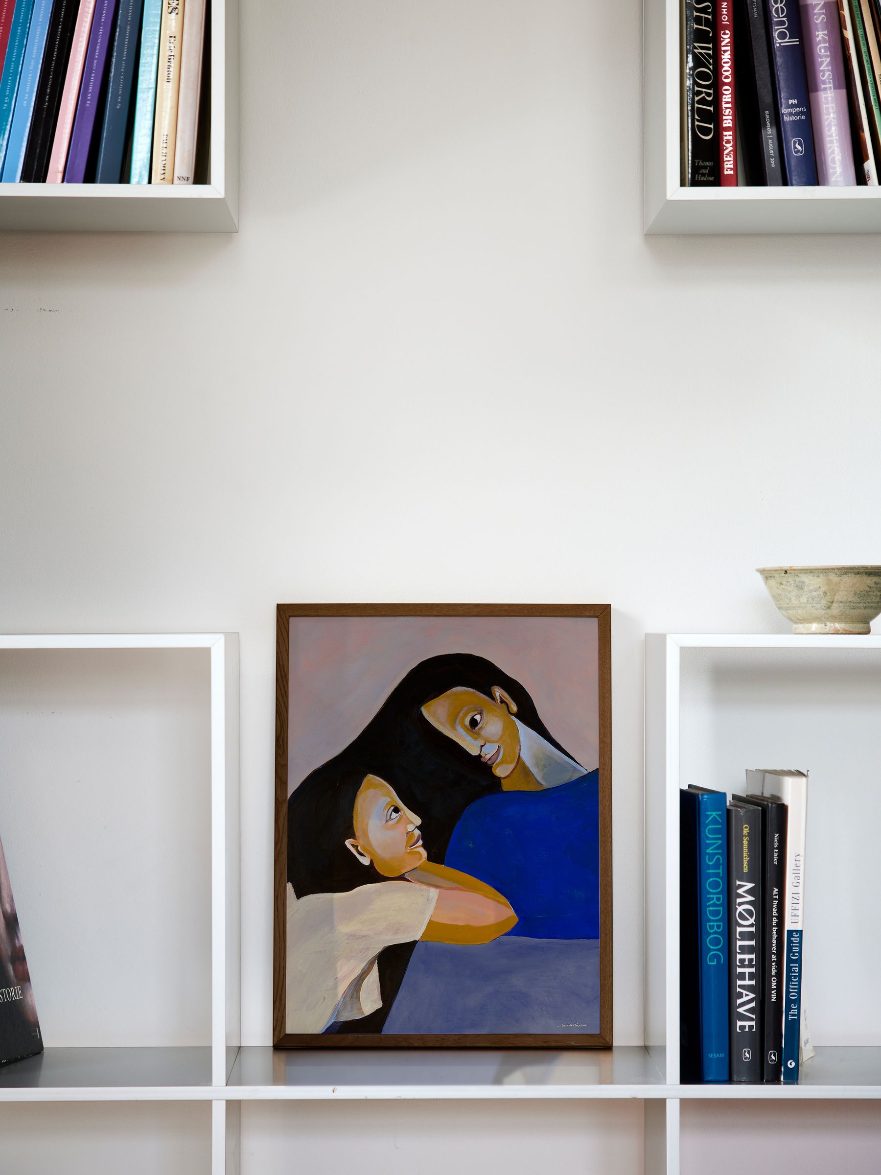 The work of Swedish artist Josefin Tolstoy brings together strong compositions with a vibrancy and vivacity of colour through oil paint on canvas. Sisters II reflects these concepts as the two central characters are brought together through their flowing black hair, offset against a series of vibrant and muted tones in blue, white and brown. The connection between the two women reflects their role within society - often picking up the pieces in times of need, and the importance of a support network of women around the world. An Art print / poster manufactured in Denmark from Environmentally certified materials and production. Medium Height 42cm / Width 32cm / Depth 2cm Large Height 72cm / Width 52cm / Depth 2cm Wipe clean only. 50% Paper, 25% Wood, 25% Glass.
