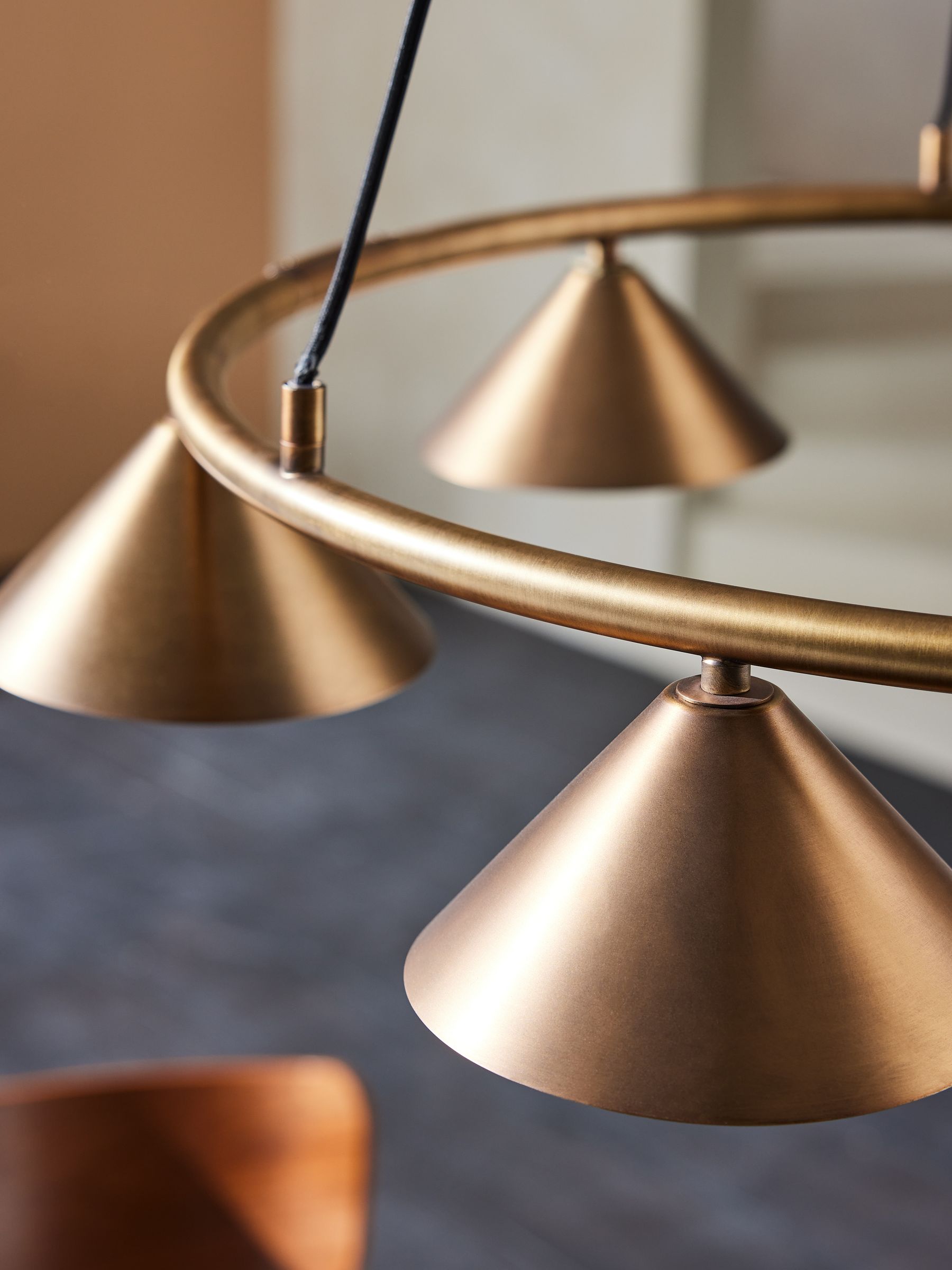 Sleek, sophisticated and an all-round mood-boost. From the elegant circular frame to the conical metal shades, Rhett is designed to cosy up your space and add, 'oooh, I love your lights' to get-togethers at home.