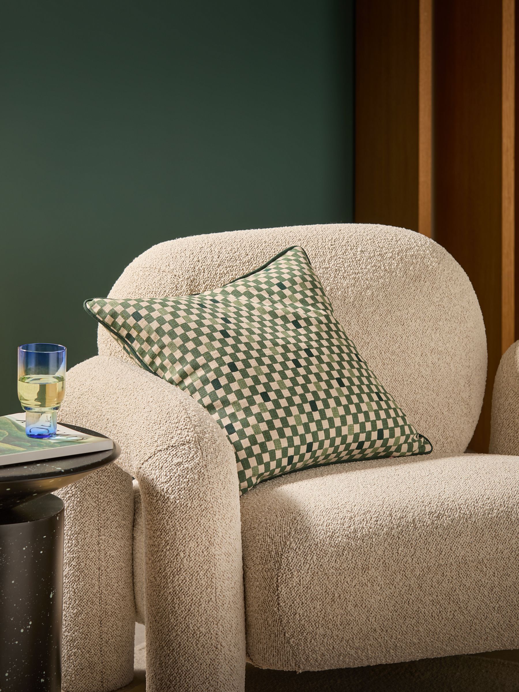 Desi Geo Check Cushion in Green