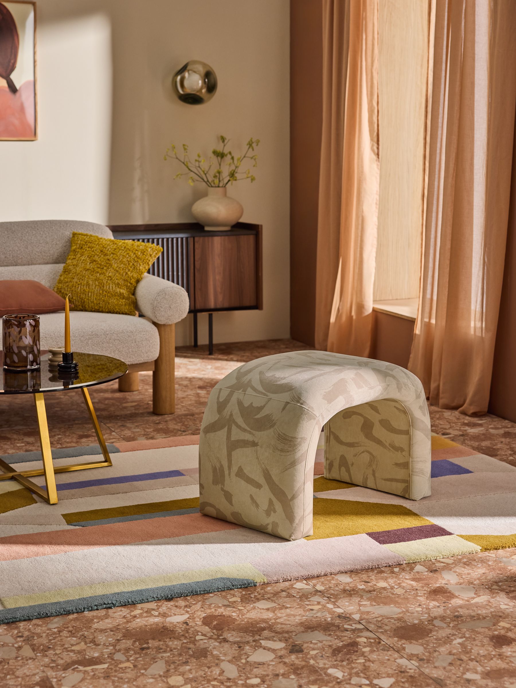 A flexible footstool that can be used to sit at a dressing table or as an extra seat or surface in your living space. Inject some pattern with our printed velvets, keep it classic in boucle or go for the soft approach with our sumptuous faux fur. Height 50.5cm Width 71.5cm Depth 45cm Multibuy: Save 10% when buying 2 or more items each priced at £150 or above across selected Sofas, Chairs, Rugs, Beds, Mattresses and Furniture Collections. Multibuy is only applicable to the UK Mainland Area.* Condition: * Saving applied will be apportioned across all qualifying items. To get the saving, you must order the qualifying items in the same order at the same time. If you later return one of the items, you will not be entitled to the discount. Offer applies to selected items at full price. Please refer to T&Cs for full details. We want you to love our furniture. So this piece comes with a 15 year guarantee that you can trust. Our 15 year Structural Guarantee covers your furniture against manufacturing faults or defects of the frame construction from the date of delivery. Exclusions apply, for more details see https://xcdn.next.co.uk/pdfs/buyingguide/15yrguarantee.pdf