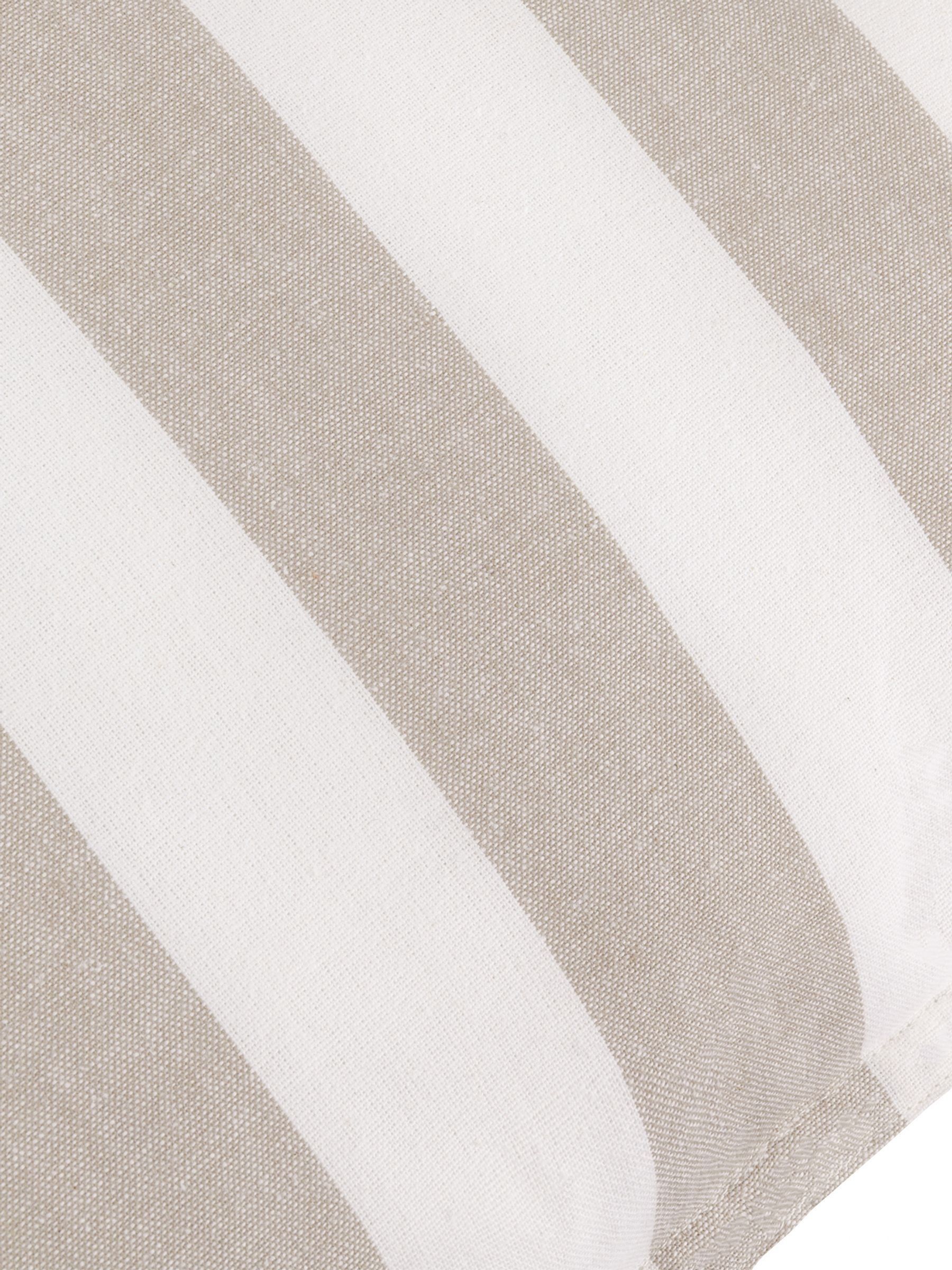 The Hayle Outdoor Cushion, combines style and versatility with a reversible stripe design, featuring wide stripes on one side and narrow stripes on the other. Made from 100% super-soft cotton and treated for outdoor use, this cushion is both durable and comfortable, making it ideal for use in both indoor and outdoor spaces. Its timeless design adds effortless style to your décor. This product is water resistant, making it perfect for use all year round. We recommend bringing your outdoor cushions inside when you are finished using them, to keep them looking beautiful for many summers to come. Height 50cm Width 50cm Depth 8cm Sponge clean only. Cover 100% Polyester. Inner 100% Polyester. Filling 100% Polyester.